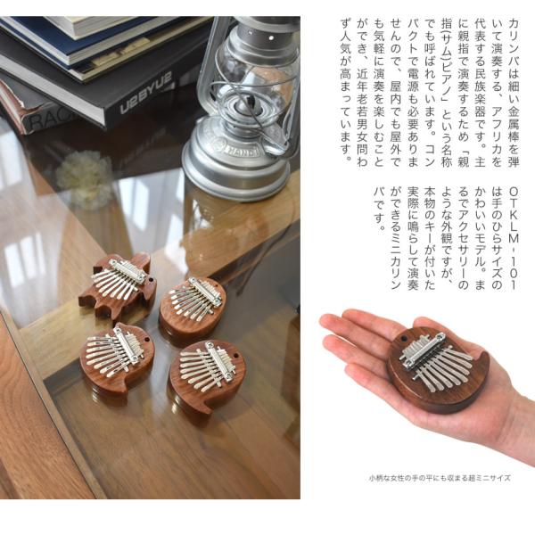 OTKLM‐101は手のひらサイズのかわいいモデル。まるでアクセサリーのような外観ですが、本物のキーが付いた実際に鳴らして演奏ができるミニカリンバです。