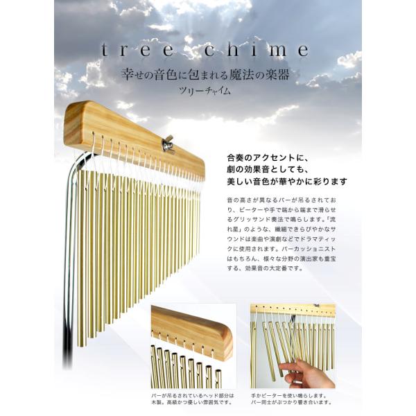 ツリーチャイムとツリーチャイム専用スタンドを合わせたお得なセットです!音の高さが異なるバーが吊るされており、ビーターや手で端から端まで滑らせるグリッサンド奏法で鳴らします。「流れ星」のような、繊細できらびやかなサウンドは楽曲や演劇などでドラマティックに使用されます。パーカッショニストはもちろん、様々な分野の演出家も重宝する、効果音の大定番です。