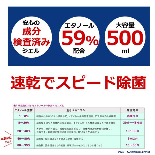商品名:MSDS 検査済み 日本から発送 アルコールジェル 大容量 500mL 安心 除菌ジェル 速乾性 ウィルス対策 アルコール 消毒 携帯用 エタノール 持ち運び