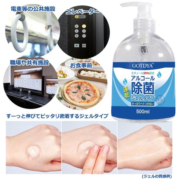 除菌ジェル アルコール ジェル 除菌 大容量 500ml 安心 速乾性 ウイルス対策 アルコール除菌 携帯用 エタノール 持ち運び