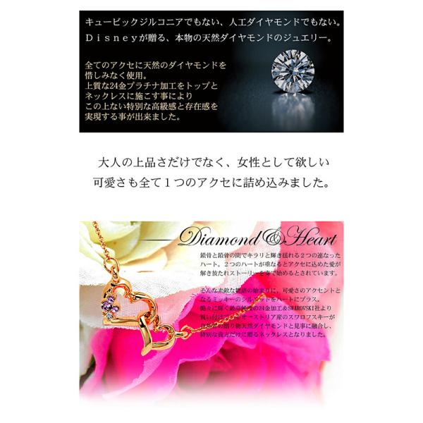 ディズニーダイヤモンドネックレス レディース ブランド チェーン ミッキー 24金 加工 ハート