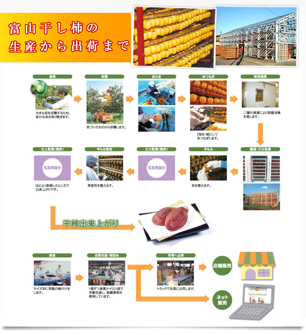 富山県推奨とやまブランドの干し柿です。南砺市でのみ栽培されている干し柿用の品種、三社柿を使用しており、大粒でコクのある甘みの干し柿です。しっかりとした甘さがありながら、上品な後味で食べやすい味わいです。名産地の高級干し柿を是非お試しください。