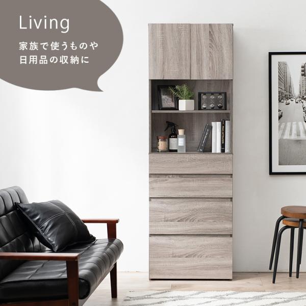 スマートな見た目と高さを活かした収納力。ランドリー、キッチン、リビングでも使えます。幅59cm