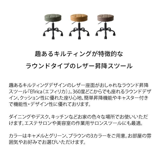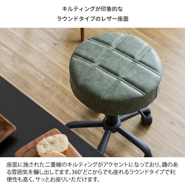 趣あるキルティングデザインのレザー座面がおしゃれなラウンド昇降スツール。