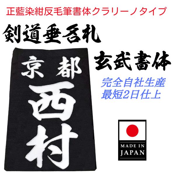毛筆書体「玄武書体」正藍染紺反 縁縫クラリーノタイプ 名札 垂ネーム 垂ゼッケン
