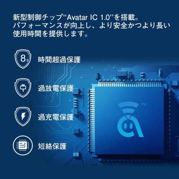 低消費電力かつ信頼性の高い制御チップがより安全に、より長い使用時間を提供します。