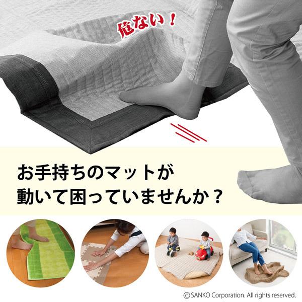 お手持ちのマット(ラグ・伊草マット・玄関マット・キッチンマットなど)滑って危ないマットの裏に貼ってお使いください。取り外し簡単で、ノリ跡も残りません。