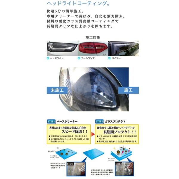横浜油脂工業の自動車用ヘッドライト等の洗浄剤、コーティング剤