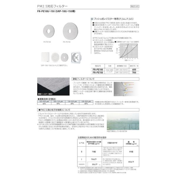 ・この製品はプッシュ式レジスター(SRP-100/-150)にPM2.5対応フィルター(FR-PE100/-150)を添付した梱包形態になります。ご使用前にフィルターをセットしてください。