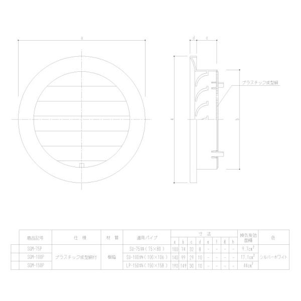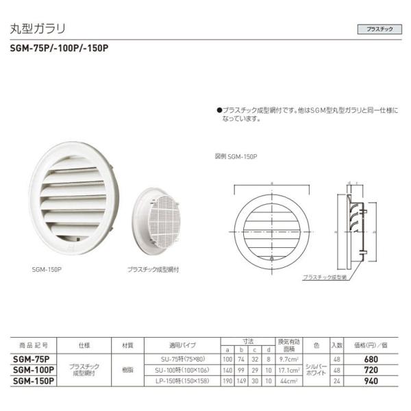 他はSGM型丸型ガラリと同一仕様になっています。