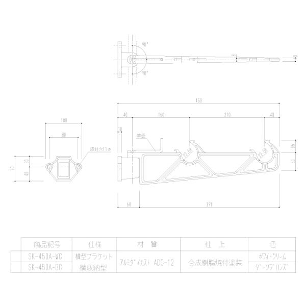 神栄ホームクリエイト 物干金物 バルコニー物干金物 バルコニー 横収納型 横収納 SK-450A ホワイトクリーム 1本