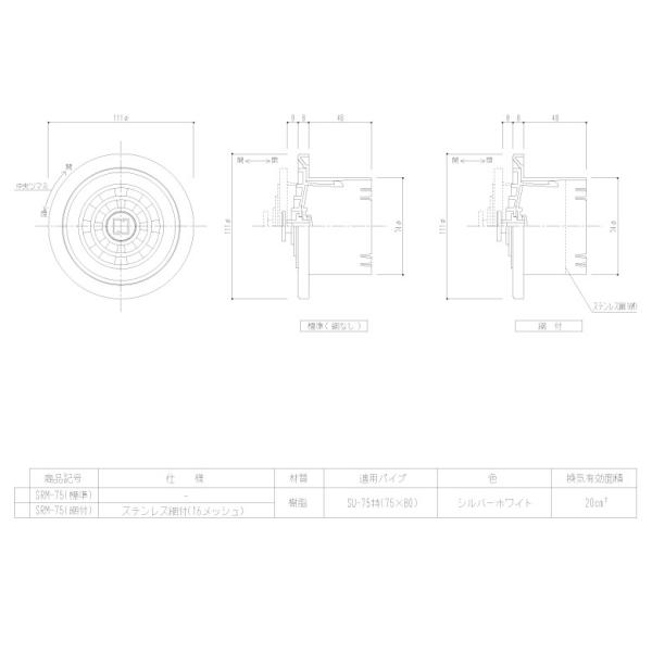 神栄ホームクリエイト 換気口部品 丸型 レジスター 換気口 丸型レジスター SRM-75 ステンレス 網付