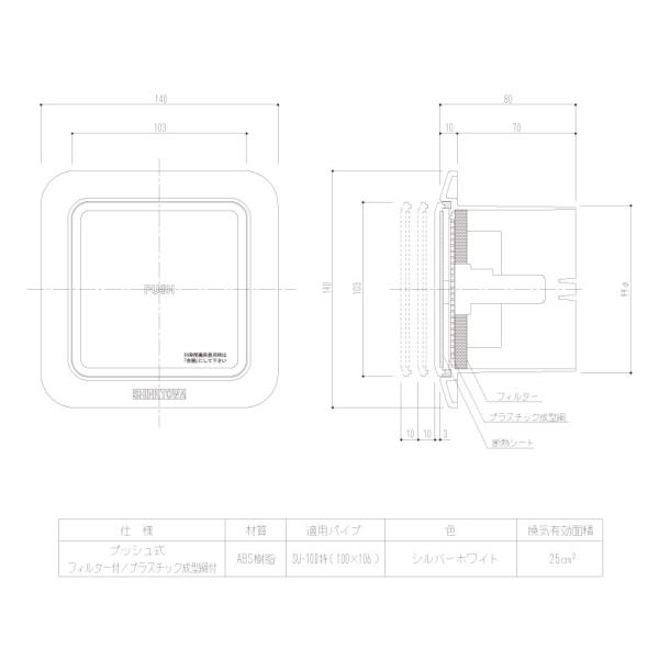神栄ホームクリエイト 換気口部品 プッシュ式 レジスター 換気口 プッシュ式レジスター フィルター付き SRP-100F