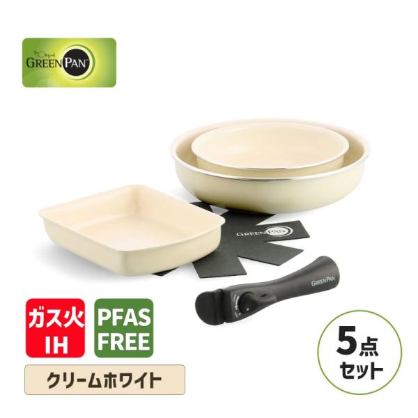 フライパンセット クリックシェフ 5点セット クリームホワイト ハンドル脱着式タイプ PFASフリー フッ素不使用 IH・ガス火対応 GREEN CC007539-004 グリーンパン