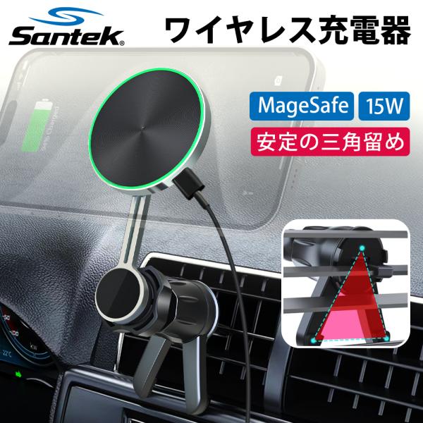 爆買 ワイヤレス充電器 車載 エアコン口取付 15W iphone12シリーズ以降 type-C スマホホルダー スマートフォンホルダー マグネット【Santek】送料無料