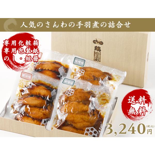 ギフト 手羽先 鶏肉 送料無料 創業明治33年さんわ 鶏三和 贈答 名古屋名物 さんわの手羽煮( 醤油・味噌)詰合せ 内祝 プレゼント