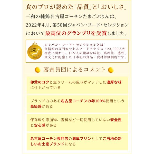 送料別 ジャパンフードセレクショングランプリ 創業明治33年さんわ 鶏三和 名古屋コーチン卵100%使用 三和の純鶏名古屋コーチンたまごぷりん