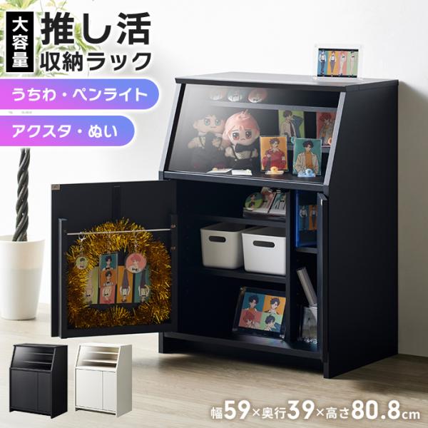 爆買 推し活 収納 ラック 幅59 奥行39 高さ80.8cm 推し活 棚 グッズ 収納 アクスタ うちわ ペンライト タオル 扉収納 アクリル板 推し おしゃれ 飾る 飾り棚