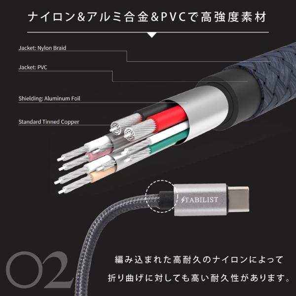 高い強度を誇るナイロン & アルミ合金 & PVC製ケーブル:10,000回以上の折り曲げ試験に合格、高い耐久性で長期間使用頂けます