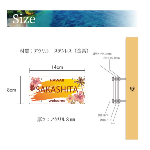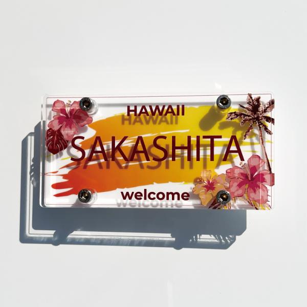 【ハワイアンナンバープレート表札 ハイビスカス】 看板 戸建て 新築 表札 ショップサイン ネームサイン 開店祝い 開業祝い 新築祝い 引っ越し祝い 送料無料
