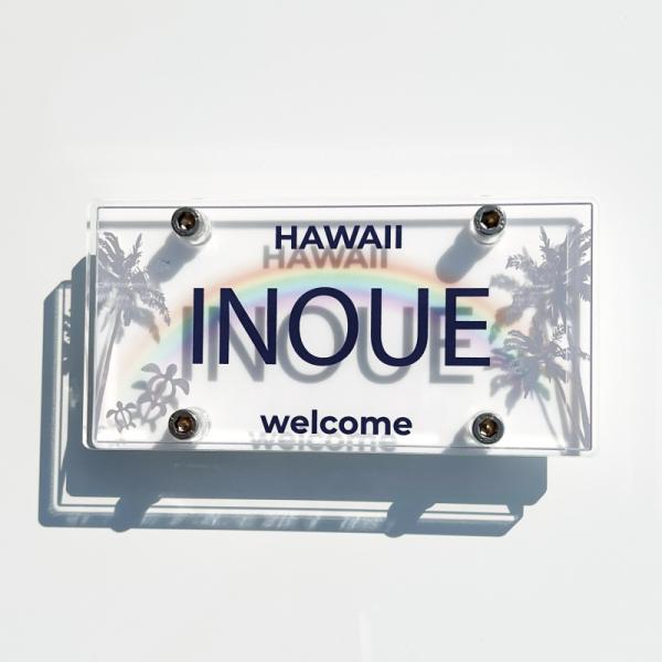 【ハワイアンナンバープレート表札 レインボー】 看板 戸建て 新築 表札 ショップサイン ネームサイン 開店祝い 開業祝い 新築祝い 引っ越し祝い 送料無料
