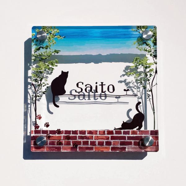 【アクリル表札/猫の散歩道】 看板 戸建て 新築 表札 ネームプレート ショップサイン ネームサイン 開店祝い 開業祝い 新築祝い 引っ越し祝い お祝い 送料無料