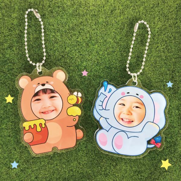 【顔はめキーホルダー/スタンド アニマル】 マスコット かわいい ベビー キーホルダー 写真 記念 ギフト