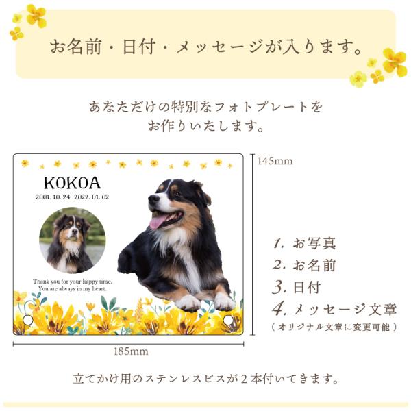 【メモリアルフォトプレート ボタニカルフラワー】 犬 猫 愛犬 愛猫 ペット 写真 かわいい オーダーメイド オリジナル 遺影 仏具 位牌 ペット供養 思い出