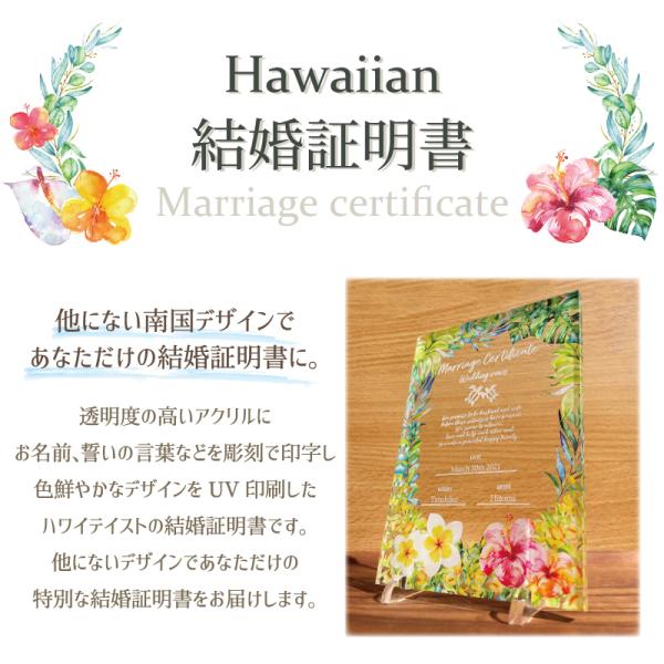 【結婚証明書 ハワイアン】 ウェディング 結婚 結婚式 人前式 記念 ウェルカムボード wedding ブライダル 記念日 結婚記念日