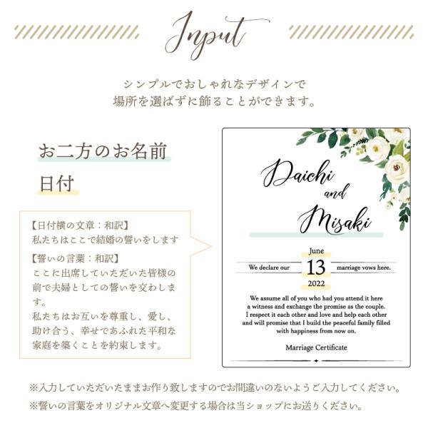 記念日・お名前・誓いの言葉を入れた世界に一つだけの結婚証明書