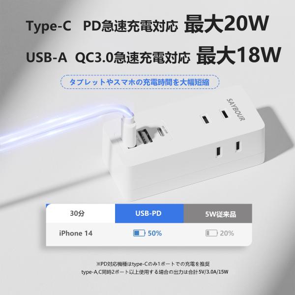 電源タップ USB付 PD18W QC3.0 充電器 AC3個口+3USB 急速充電 アダプタ USB 海外 240V コンセント Type-C 小型 コンパクト マルチタップ