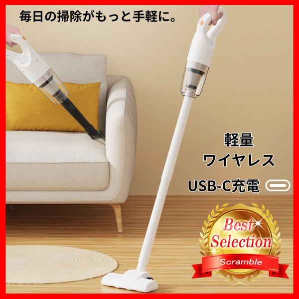 コードレス掃除機 強力吸引 15000Pa 軽量 USB Type-C充電 ハンディ スティック ペット 車用 静音 コンパクト