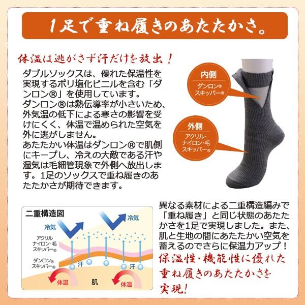 (パケット便送料無料)ひだまり ダブルソックス 紳士用ソックス P60(男性用/靴下/秋冬用/汗対策/抗菌/消臭機能/日本製)