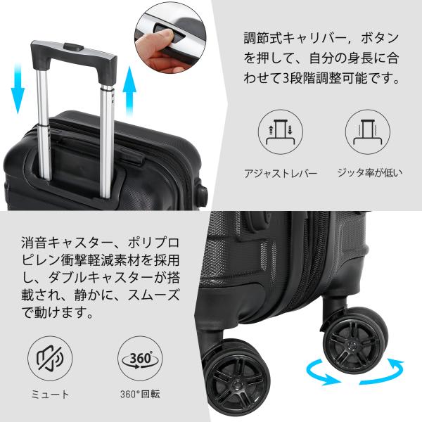 「セール価格」選べる3色 スーツケース sサイズ キャリーバッグ 機内持ち込み 静音 旅行かばん 旅行用品 出張 ビジネス 軽量 シャンパン色 ネイビー ブラック
