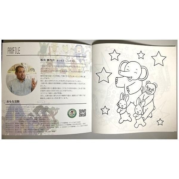 松元伸乃介 氏デザインの"愉快な動物たち”をぬり絵にしたものです。
