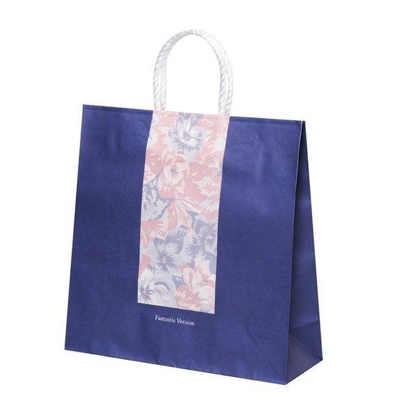 青色に花柄が綺麗さと上品さを感じさせてくれる紙袋です。