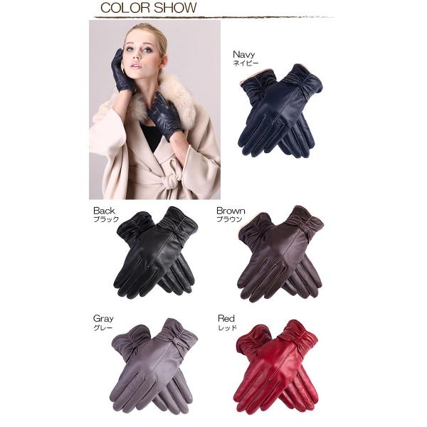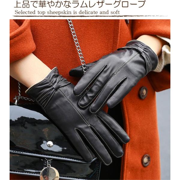 手袋 レディース 革 グローブ レザー ラム革 本革 手ぶくろ レザーグローブ 本革グローブ リボン 裏起毛 防寒 きれい かわいい 女性 ギフト 送料無料