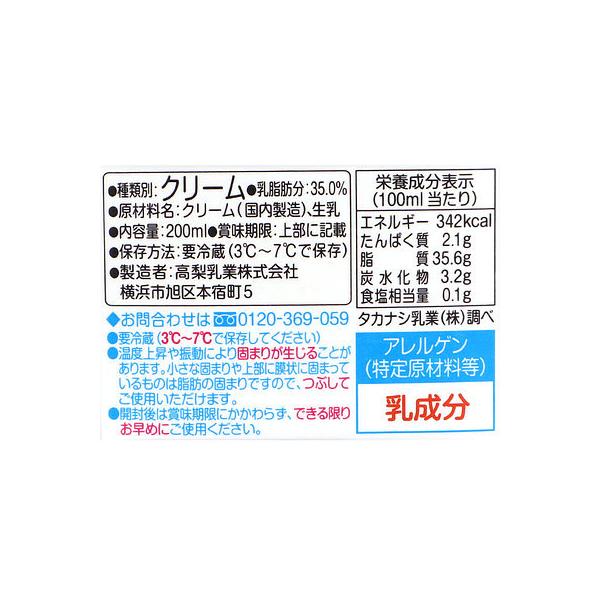 タカナシ 北海道純生クリーム35% 200ml