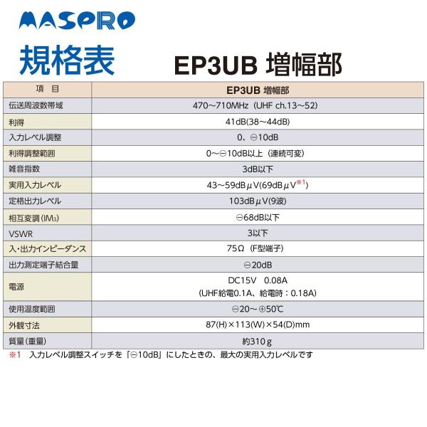 マスプロ UHFブースター EP3UB 2段階切り替え 在庫あり即納
