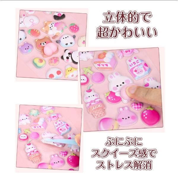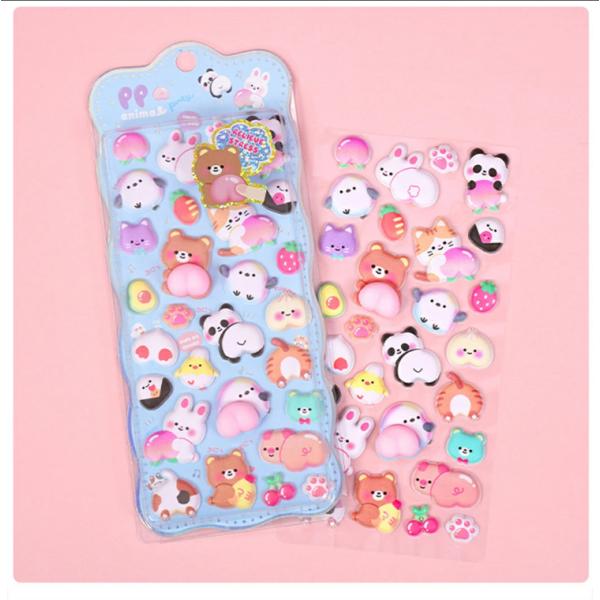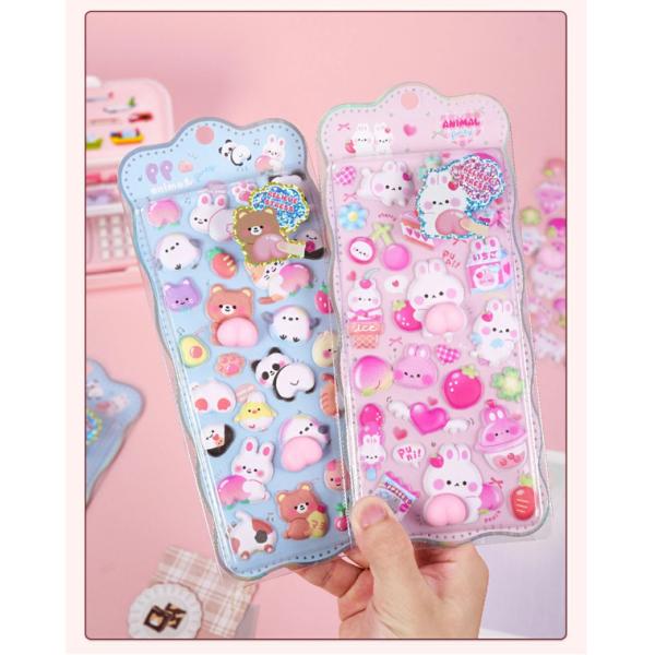2枚いり ぷにぷに おしり シール スクイーズ シール 可愛い キャラクター うさぎ くま ねこ ご褒美シール 立体 泡ステッカー 3D ステッカー ふわふわ もちもち