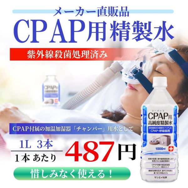 精製水 1l CPAP 用 精製水 1L × 3本 サンエイ化学 日本薬局方 純水 医療用 化粧 睡眠時 無呼吸症候群 吸入器