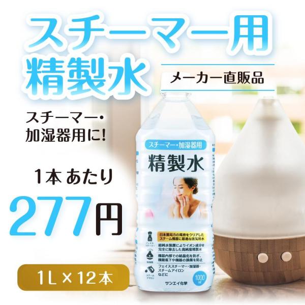 精製水 1l 純水 スチーマー 用 精製水 1L × 12本 サンエイ化学 日本薬局方 プレ 化粧用 水 加湿器 大容量 美容 エステ アロマ