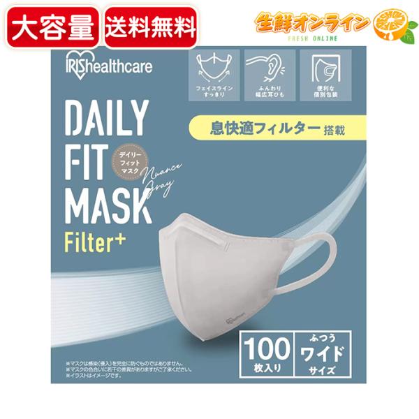 ≪100枚入≫【IRIS healthcare】アイリスオーヤマ デイリーフィットマスク 立体 フィルタープラス ふつうワイドサイズ ニュアンスグレー【コストコ】
