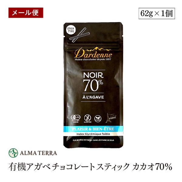 【メール便】有機チョコレート スティック カカオ70% 62g 有機JAS認証 ダーデン フランス アルマテラ フェアトレード ペルー産カカオ カカオ含有率70%