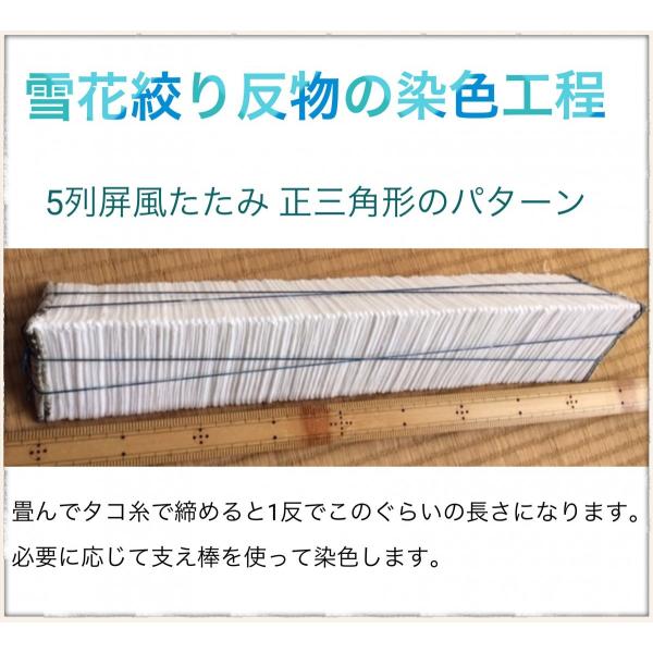 ☆折りたたみやすく襞もとりやすいので、雪花絞り、蛍絞り、日の出絞り、鎧絞りなど大胆な柄の木綿の絞り染めに適しています。☆