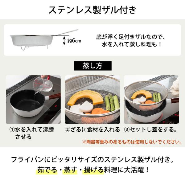 付属のざるで効率よく調理ができ、料理のレパートリーも広がります。