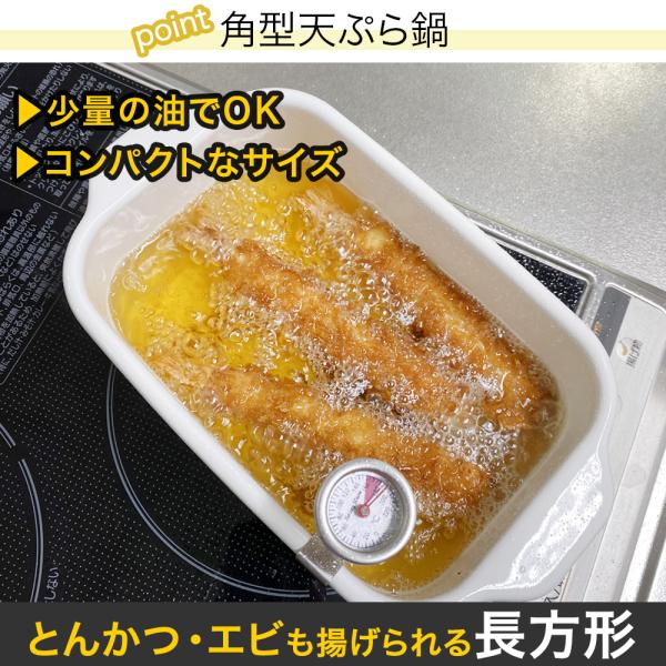 富士ホーロー 角型天ぷら鍋 ih対応 揚げ物 鍋 ih 小さい スクエア ホーロー ミニ 四角 温度計 バット 揚げ鍋 鍋 琺瑯