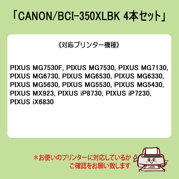 【商品内容】BCI-350XLBK(ブラック / 黒)4本セット互換インク(新品)
