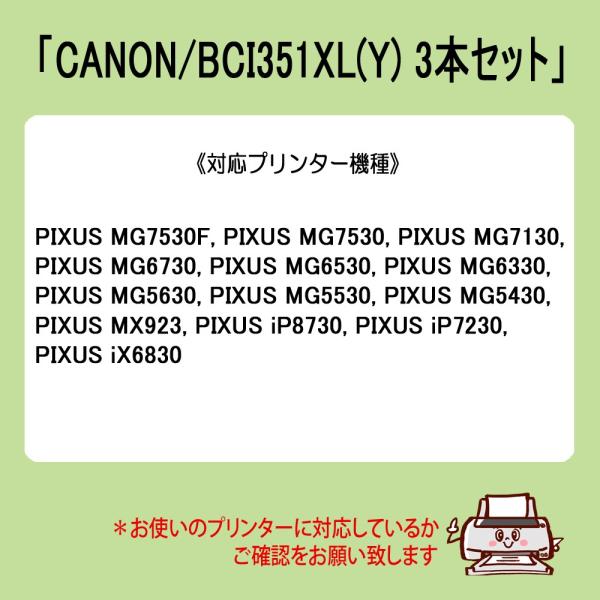 【商品内容】BCI-351XLY(イエロー)×3 CANON キャノン キヤノン 互換インク (新品)