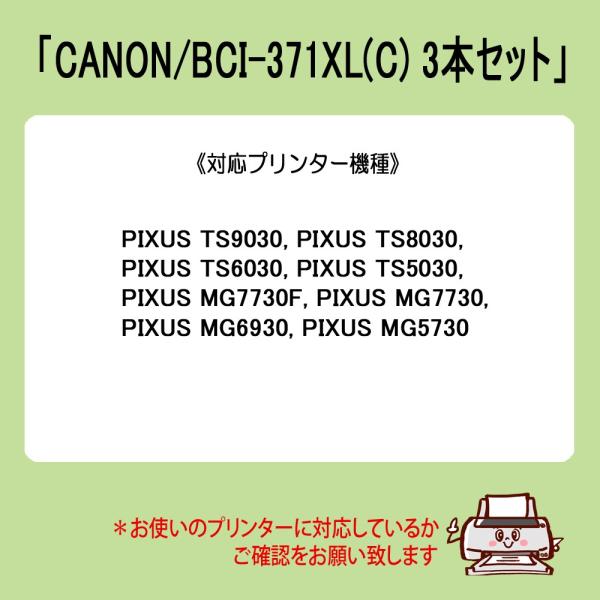 【商品内容】BCI-371XLC(シアン)×3 CANON キャノン キヤノン 互換インク (新品)